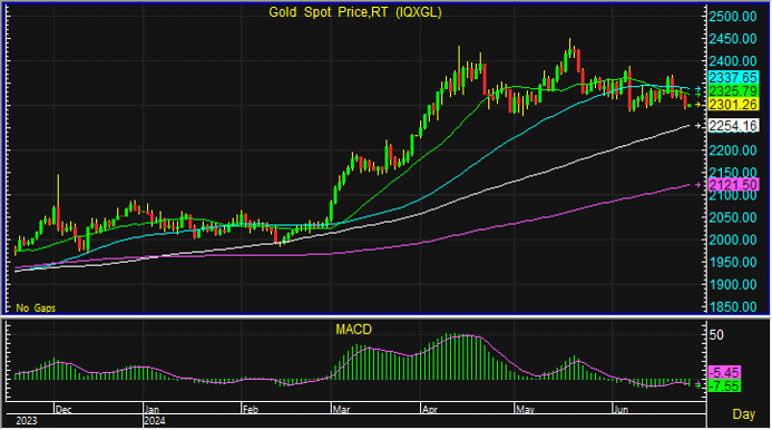 แม้ว่าราคาทองคำจะฟื้นตัวเล็กน้อย แต่ราคาทองคำอาจถูกกดดันจากสัญญาณทางเทคนิคที่ยังบ่งชี้การปรับตัวลง หลังจากที่ราคาทองคำสามารถหลุดtrend line ลงมาได้ในกรอบสามเหลี่ยมแบบ Symmetrical triangle และหลุดแนวรับจิตวิทยาที่ 2,300 ดอลลาร์ได้ ระยะสั้นจึงยังคาดว่าราคาทองคำอาจปรับตัวลง